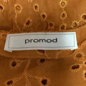 Promod Mustard Yellow Sleeveless Eyelet Button Front Wrap Style Career Office Business Casual Travel Blouse Top Sz 8