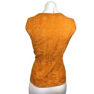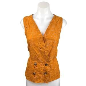 Promod Mustard Yellow Sleeveless Eyelet Lace Button Up Wrap Vest Blouse Top Sz 8