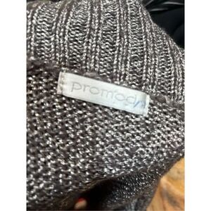Promod S grey shimmer short sleeve open front cowl collar cardigan w/fabric belt