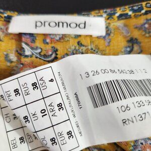 Promod Top Women's Size 6 Blouse Paisley Print V-Neck Three Quarter Sleeve Shirt