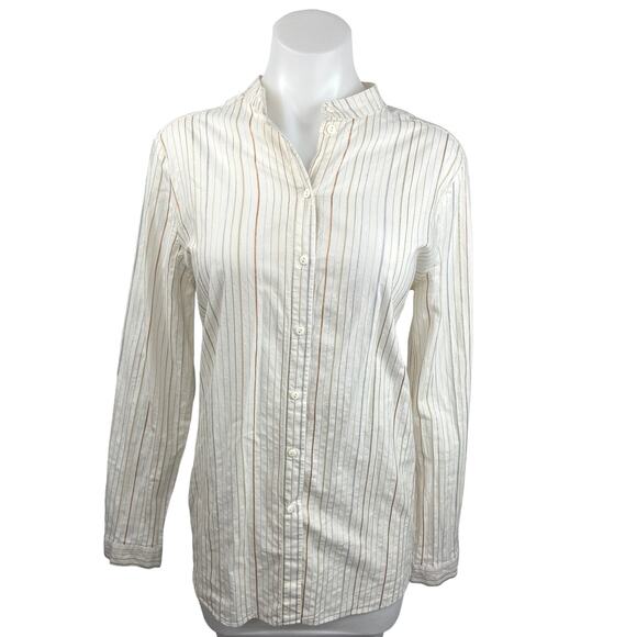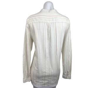 Promod White Striped Button Down Long Sleeve Career Office Blouse Shirt Top 10