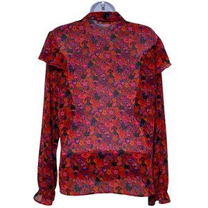 Promod-Women's Medium Button Top Collared Light Weight Long Sleeve Floral Design