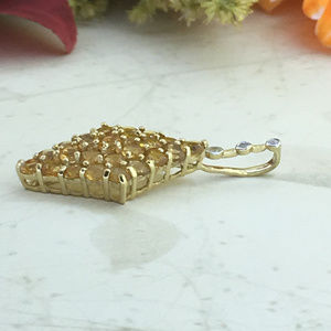 Ladies Elegant Diamond Shape Prong Set Golden Topaz 925 Sterling Silver Gold Plated Charm Pendant