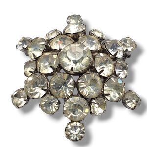 Prong Set Rhinestone Cluster Dome Silver Tone Brooch Pin Vintage Mid Century Glam