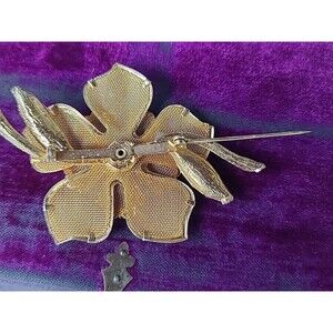 Prong Set Rhinestone Gold Tone Metal Floral Brooch Vintage, READ