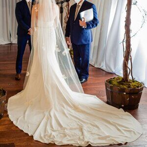 Dress was dry cleaned and preserved and is fully wrapped and boxed in like new condition.