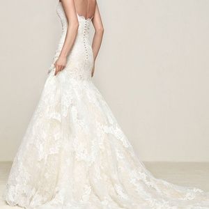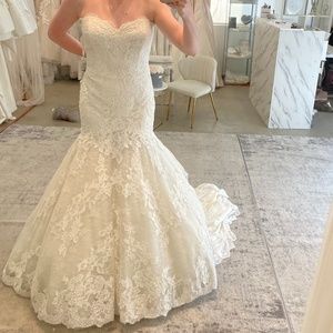 This is a sample from a high end bridal boutique and has been tried on before. No minimal signs of wear and overall in excellent condition.