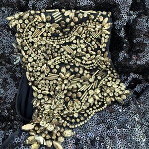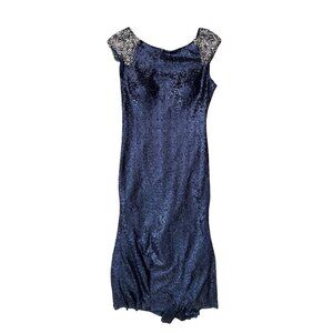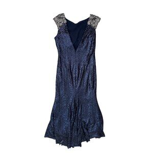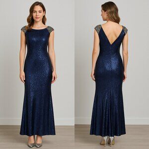 Pronovias navy sequins beaded silver shoulders gown size 16