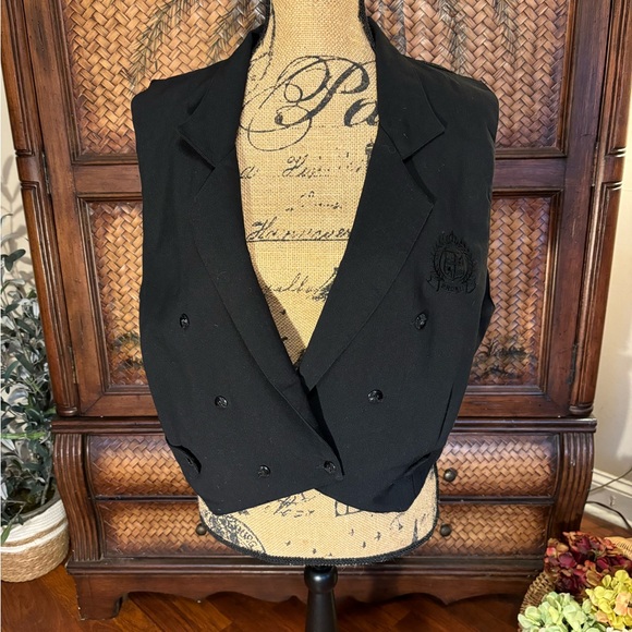 Pronti black vest with monogram emblem detail. Buttoned side straps bust size 33” size medium