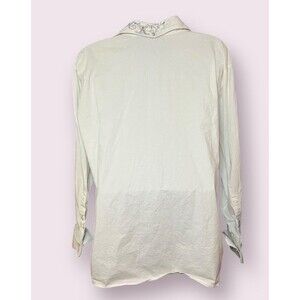 Elevate your wardrobe with this stunning Pronti Collection By Phita button-down shirt. The white shirt features a beautiful floral pattern, long sleeves, and a collared neckline with a button-down closure. It is perfect for any occasion, whether it be a casual day out or a party/cocktail event. The shirt is made of a lightweight spandex and cotton knit fabric, which provides a comfortable and stretchy fit.
