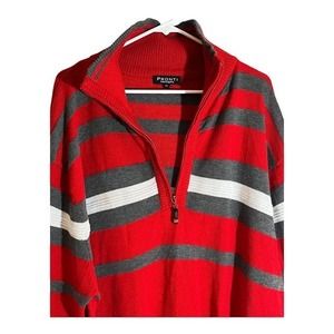 Pronti Collection by Phita Mens Red/Gray Striped Long Sleeve Sweater. EUC No Holes Or Stains