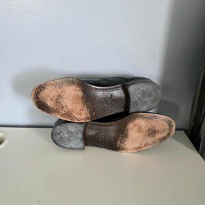 These shoes are in great condition. There is a small cuff on the one heel, and a place where the patent is bumpy on one side. Please see pictures. These flaws would be hard to see from a distance.