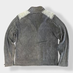 -Blue Pronto UOMO brown distressed look, y2k, grunge full zip sweater with inner fleece collar.