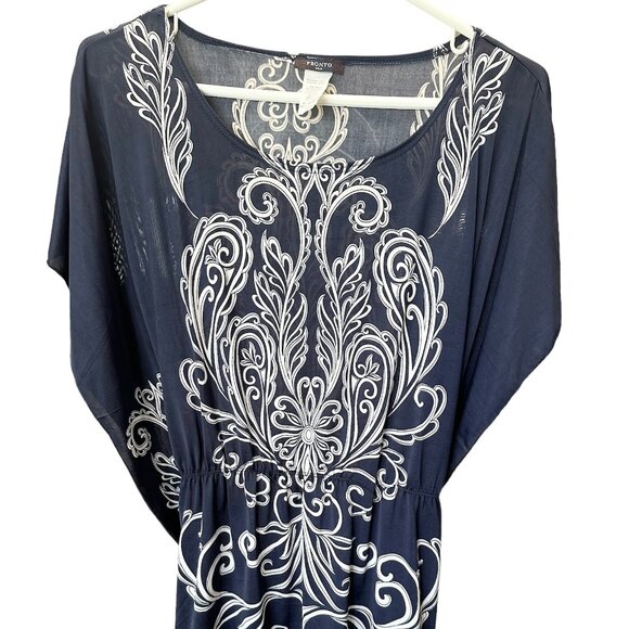 Pronto USA Women Blouse Blue/White Size Large Round Neck Batwing Short Sleeves