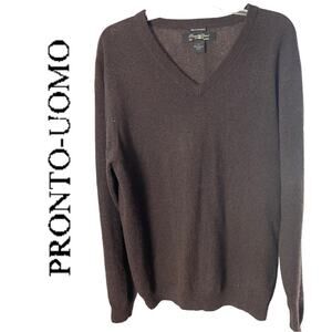 Pronto Uomo 100% Cashmere Italian V-Neck Sweater, Quiet Luxury, Minimalist, Brown, L
