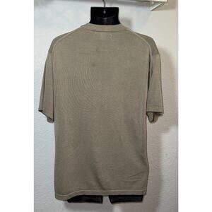 The Pronto Uomo 100% Silk Olive Green Men’s Size M Short Sleeve Pullover Shirt is a stylish and versatile garment suitable for various occasions including casual, formal, and business settings. Made from luxurious silk knit fabric, this shirt features a solid muted olive green color with a regular fit and crew neckline. The pullover style and short sleeves make it easy to wear and perfect for those who appreciate designer clothing with a classic, preppy look. Hand wash only to ensure the longevity and quality of this high-end piece.