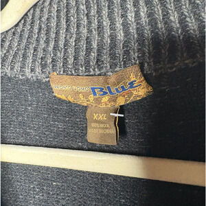 Pronto Uomo Blue 100% Wool Full Zip Sweater Jacket XXL Gray Knit Cardigan Pockets