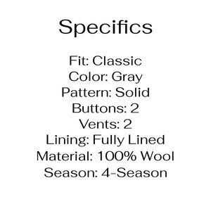 Pronto Uomo 46L Gray Solid 2-Button Sport Coat Blazer Jacket T742