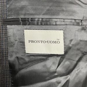 Pronto Uomo Blazer Sport Coat Mens 46L Green Check Silk Wool Two Button