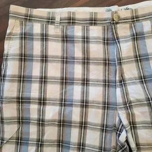 Pronto Uomo Blue Men's White/Blue/Grey Plaid Cotton Shorts EUC sz 48 Rise 13 Inseam 11