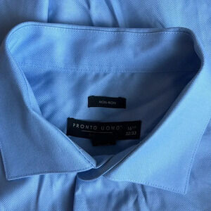 Pronto Uomo Blue Non-iron Dress Shirt Long Sleeve Button Down Sz 16 1/2 32/33