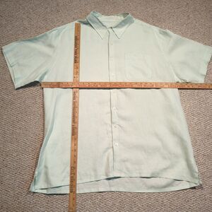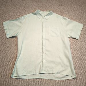 Pronto Uomo Button Down Shirt Mens 3XL Green 100% Linen Short Sleeve Casual