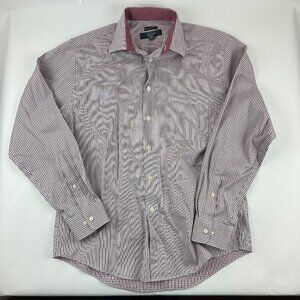 Pronto Uomo Button Up Shirt Mens 34/35 Red Plaid Non Iron Long Sleeve
