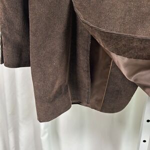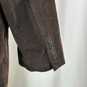 The Pronto Uomo Corduroy Sport Coat is a stylish and versatile addition to any man's wardrobe. This brown single-breasted blazer is designed for big and tall men, with a size 46 length. Made from high-quality polyester corduroy fabric, this sport coat exudes a classic yet contemporary style. Perfect for both casual and formal occasions, this overcoat is a must-have for any fashion-forward man. Excellent preowned condition. See listing photos.