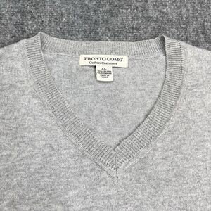 Pronto Uomo Cotton Cashmere Sweater Mens XL Gray Pullover V Neck.