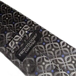 Pronto Uomo Couture Black Silver Blue Dots Tie