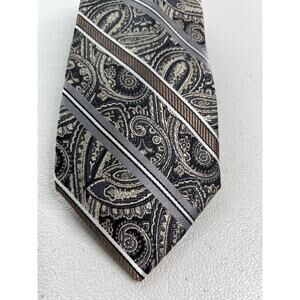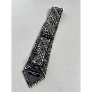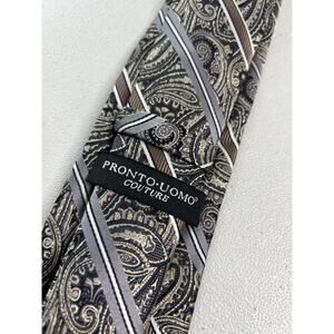 The Pronto Uomo Couture Gold and Multicolor Paisley Pattern Handmade 100% Silk Tie is a classic and stylish accessory for men. Made from high-quality silk and featuring intricate paisley pattern, this tie adds a touch of sophistication to any formal or professional outfit. Handmade to ensure attention to detail, this tie is 100% silk and measures between 57" to 60" in length, making it a versatile piece for any man's wardrobe. T-0347