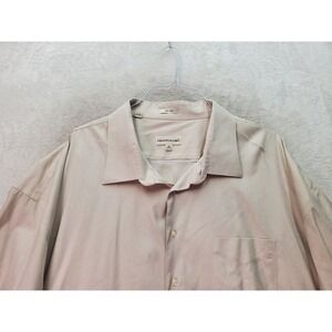 Pronto Uomo Dress Shirt Men Size 22 Tan Bo's 2-ply Non Iron Collared Button Down.