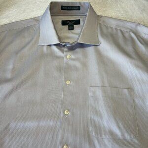 Pronto Uomo Dress Shirt Men's 18 32/33 Gray Striped Long Sleeve No Iron Slim Ft