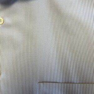 The Pronto Uomo Dress Shirt for men is a stylish and versatile piece with a classic slim fit and spread collar. This slim-fit shirt in a gray striped pattern features long sleeves and a button closure, making it suitable for various occasions including travel, parties, casual wear, business meetings, and workwear. Made from premium Egyptian cotton, this non-iron shirt is easy to care for and machine washable, allowing for convenient maintenance. With its barrel cuff style and 18-inch neck size, this dress shirt from Pronto Uomo is a timeless and practical addition to any man's wardrobe.