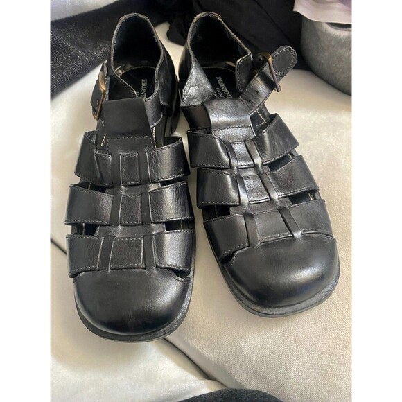 Pronto Uomo Firenze Mens Black Leather Sandals SZ 10M/Italy