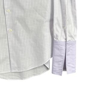 Pronto Uomo Lavender Grid Non-Iron Slim French Cuff Elegant Dress Shirt 14 1/2