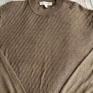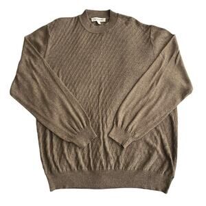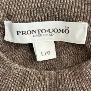 Pronto Uomo Long Sleeve Diagonal Knit Pullover Sweater Large Tan Made in Italy