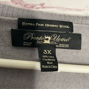 Pronto Uomo Men Size 3X Gray Extra Fine Merino Wool Long Sleeve V-Neck Sweater.