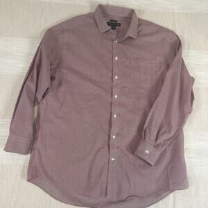 Pronto Uomo Men's Dress Shirt 18.5 36/37 Tall Red White Checks Button Up No Iron