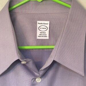 Pronto Uomo Mens Non-Iron Lavender Dress Shirt 19 34/35 100% Cotton Button-Up