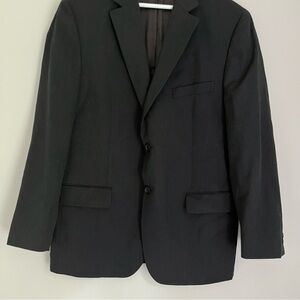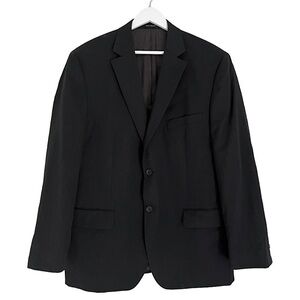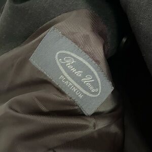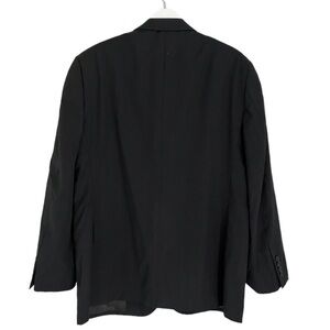 Pronto Uomo men’s notch lapel blazer jacket in black. There is no size tag, but based on measurements it is around a size medium or 48. Please see measurements below for an accurate fit.