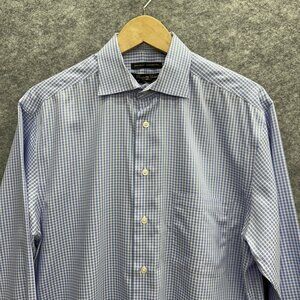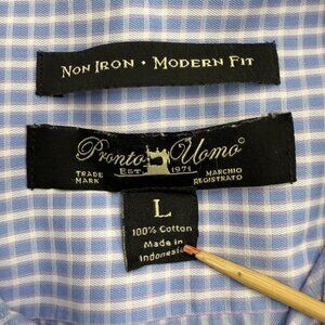 Pronto Uomo Men's Shirt Button-Up, 100% Cotton, Non Iron Modern Fit, Blue Checker, Size L