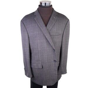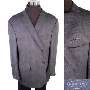 Pronto Uomo Men's Sport Coat Blazer Jacket Two Button Plaid Brown Wool 50R EUC