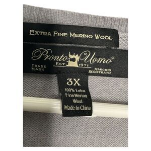 This is Pronto Uomo Men Size 3X Gray Extra Fine Merino Wool Long Sleeve V-Neck Sweater