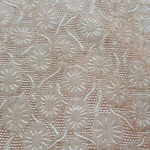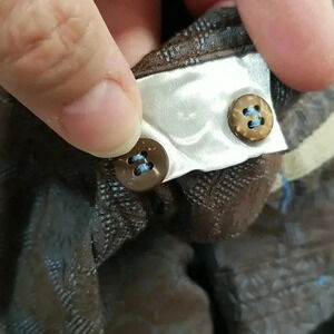 Textured: Medallion Floral with cute Coconut Shell Buttons. Baby Blue Velvet Ribbon Detail on the Sleeves by the Cuff.