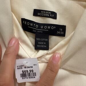 Pronto Uomo Modern Fit Men’s Dress Shirt Large 16 34/35 Beige Non Iron NWT