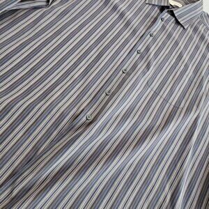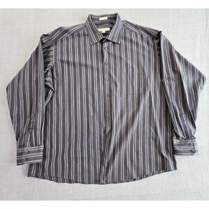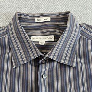 Pronto Uomo Non Iron Shirt Men's 3XLT Brown Stripes EUC Long Sleeve Button Up AN