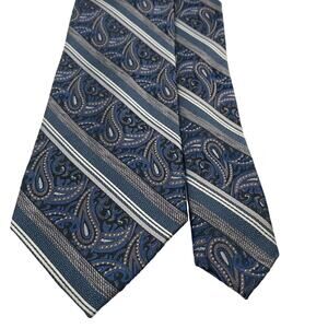 Pronto Uomo Paisley Blue / Silver Striped Silk Tie 60"L x 3.25"W