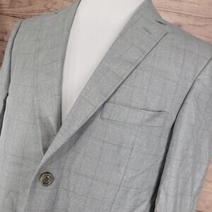 Pronto Uomo Platinum Sport Coat Mens 42R Gray Silk Wool Windowpane Blazer