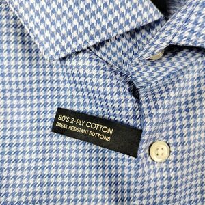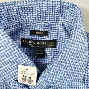 NWT Pronto Uomo Shirt Mens Size 16.5" Blue White Herringbone Button Down Career